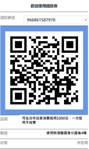 國旅券的使用方式相當單,實體店家只要掃描QR code、線上購買平台只要輸入券號就可以抵用,不能找零,不限使用張數,也可以與五倍券、其他加碼券一起使用,期限到明年4/30止。