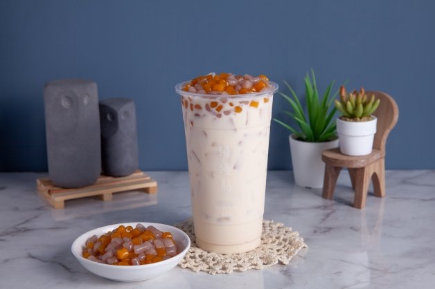 喜歡喝咀嚼系飲品的妞妞就點這杯「小芋圓奶青」吧!選用台灣本土的四季青茶,並以精選奶精調配而成,加上新鮮現煮的「雙色小芋圓」以後,那QQ口感讓人不知不覺就喝掉了一大半~想嘗試珍珠以外的其他配料嗎?那就來試試這杯吧!