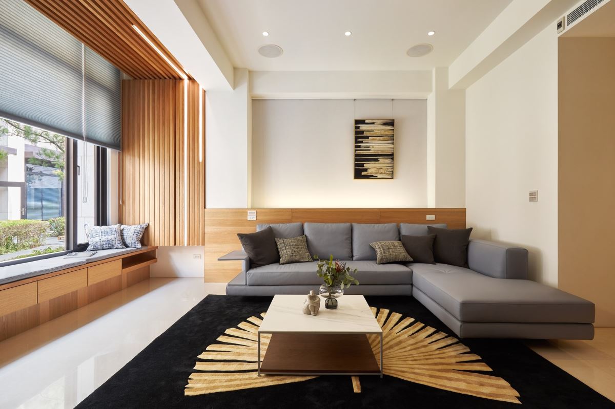 窗邊打造臥榻區,乘坐於此可享受戶外優美景緻,也是屋主平時悠閒的角落,不僅可閱讀、放鬆,當假日有親友到訪時,可在此品茶、飲用咖啡或是聊天,成為交流談心的場域;臥榻下方結合收納櫃,滿足生活實用所需。