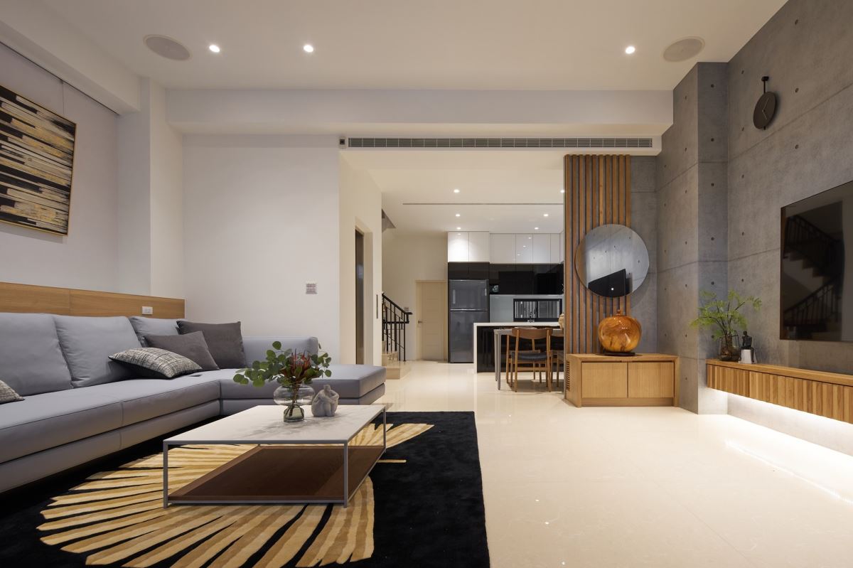 循著這股濃厚的情感,加上屋主夫妻喜愛平易近人、簡單與舒適的空間感受。Jimmy 總監利用簡單線條為基底的現代風為核心,公領域以開放格局,伴隨窗戶引入綠意景致,室內則選用木紋格柵、清水模等自然材質,內外呼應,交織出明亮、自然的舒適氣息。