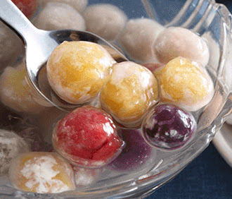 彈牙的外皮包裹著各式各樣的內餡,有白豆餡、綠豆餡等各種口味,不管是加到冰品或和其他包餡湯圓一起享用都是絕佳組合啊~加上七彩粉圓晶瑩剔透的可愛模樣,一定是大人小孩都喜愛的點心~