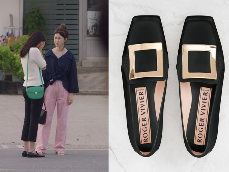 身為ROGER VIVIER品牌大使,申敏兒在劇中也穿著多雙該品牌的鞋款走遍整個海岸村,第一集中申敏兒就花大錢買下了想要很久的高跟鞋,並且與金宣虎有所交集。銀色閃亮鞋身搭配經典水鑽方扣,任誰看到都會心動不已吧!