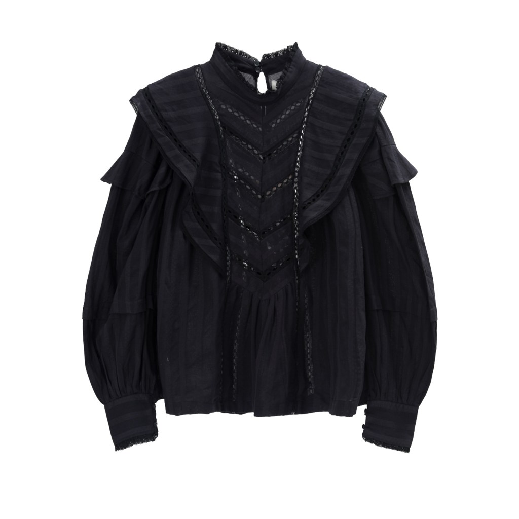 申敏兒在劇中的服裝除了大膽運用色彩之外,也能在她的穿搭上看到許多宮廷元素,如果平時上班服裝不想感覺這麼古板正式,可以選擇有澎袖、蕾絲,或者荷葉邊設計,在細節處散發可愛又優雅的氣質,平衡職場穿搭嚴肅感。