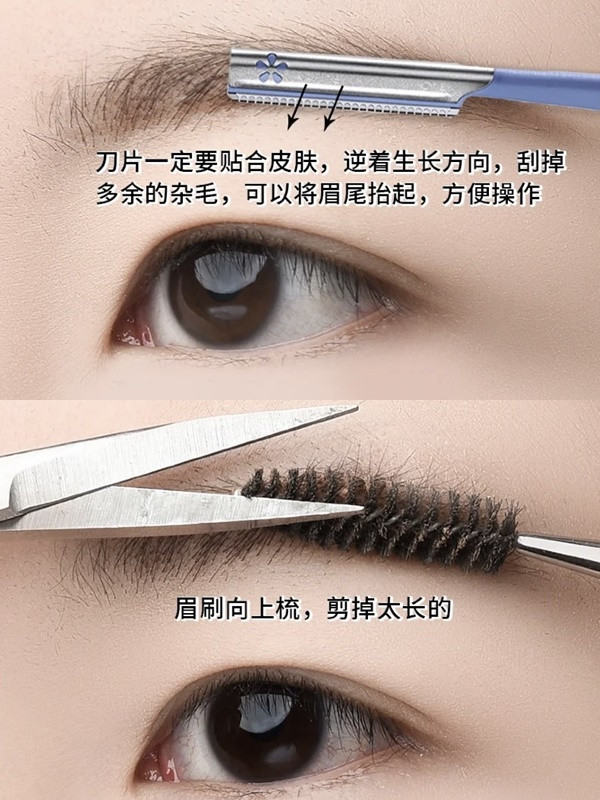 另外,小編也建議大家在進行修眉前可以準備好修眉刀、眉梳、眉毛剪這三樣工具,修眉時記得刀片一端要與肌膚貼合並夾45度角,開始逆著生長方向刮掉多餘雜毛,再搭配眉梳整理,剪掉過長的眉毛,掌握這些小細節,就能修出精緻又有型的眉毛輪廓囉~