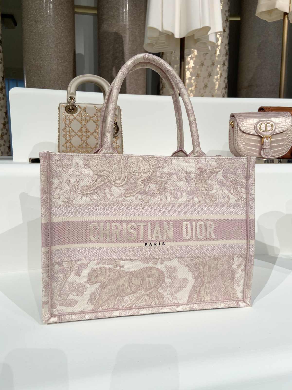 大包妞妞們的心頭好Book Tote包款是創意總監Maria Grazia Chiuri為了向1967年原創的Oblique帆布包致敬之作,這款刺繡帆布包款在推出之後每一季都會換上不同主題的刺繡花紋與圖案,是許多時尚網紅們的愛包之一,在度假系列中以少女感十足的淡粉色刺繡設計呈現,非常夢幻~