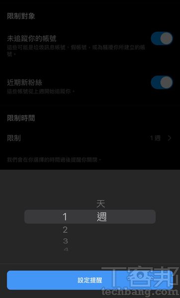 步驟5.這裡可選擇限制的對象及限制的時長。