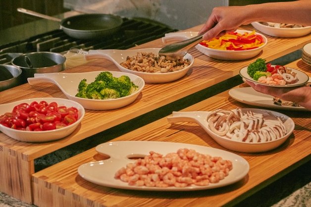 新增的部分還有「擴大現點現做」,亮點主要有「現點現做義大利麵區」、「現燙牛肉湯品區」和「台式海鮮熱炒區」等,不僅可以吃到熱騰騰的料理,「配料客製化」和「份量自由化」的選搭更是給予享用者極大的選擇權,在吃Buffet也能吃出「自我」特色!