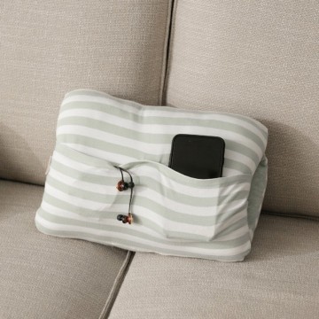 擔心雙手一放入暖手枕就沒辦法好好看劇或打手遊了嗎?別擔心,這款遊戲機款式特別隔出透明區塊,讓移不開螢幕的你不焦慮,側面還有插孔設計,可以放耳機和充電線。枕頭後方還有可放熱敷袋的空間,若碰上生理期或太冷的天,也能放入熱敷袋使用,堪稱超萬能的暖手枕啊!