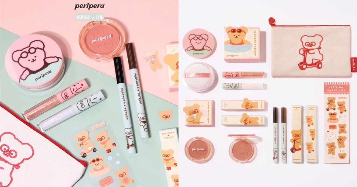 最後一位來介紹韓國最夯的聯名商品吧!有在買韓國代購的儂粉們,一定對這隻戴著眼鏡的超萌熊熊很熟悉,牠就是韓國文創品牌「Teteum 」的主角BeBe,這次與韓國開架品牌Peripera合作推出一系列萌翻的彩妝,從腮紅、蜜粉到眼影蜜及眼線筆都有!另外還有可愛的貼紙、電腦3c周邊等等,讓人好想通通帶回家。想成為韓系歐膩就靠它們了,一拿出來就氣質、可愛通通爆發啊!
