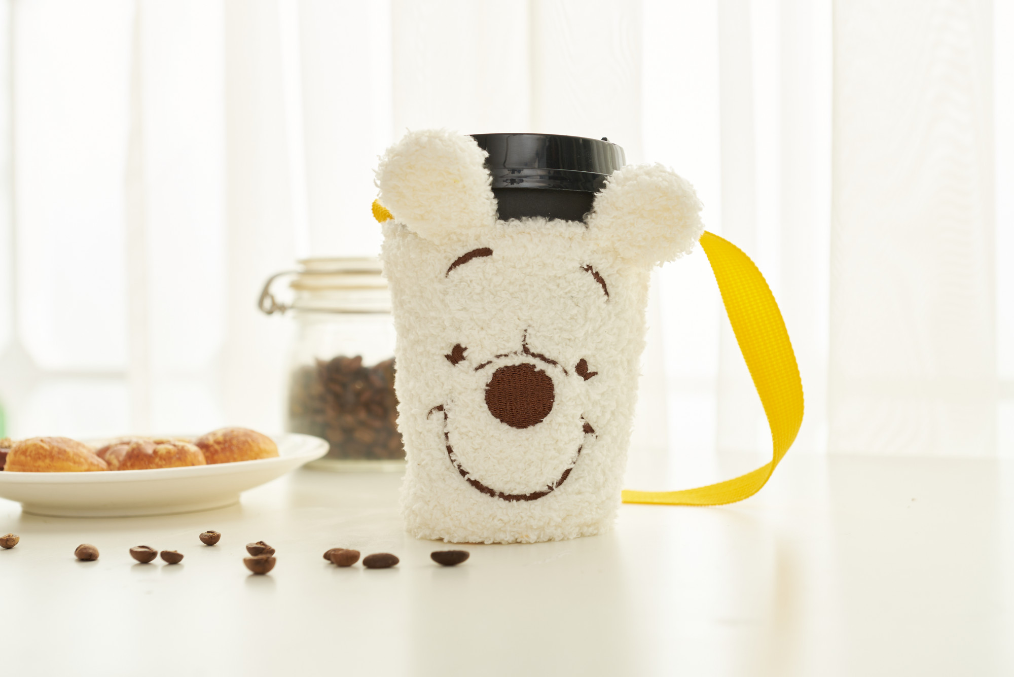 「雪白小熊維尼系列杯套」輕鬆攜帶你的精神飲品,毛茸茸造型增配上經典維尼黃,誰的杯套還能比你更可愛又溫暖呢?