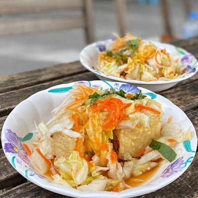 玉里橋頭臭豆腐其實在當地就小有名氣,到了玉里火車站後,搭計程車約五分鐘內即會抵達,喜歡吃臭豆腐的妞妞們來到花蓮一定要吃。這家的臭豆腐咬起來外酥內軟,配料除了泡菜、蘿蔔絲,再加上畫龍點睛的九層塔讓臭豆腐變得更香更提味,看似一般的夜市小吃,卻是許多當地人心中的no.1!小提醒就是這家店經常要排隊,所以要記得預留時間才不會延誤到後面行程哦!