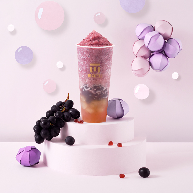 作為升級款的「巨峰葡萄果粒波波」同樣嚴選產地直送的新鮮巨峰葡萄,黑紫色外衣散發濃郁果香,還有飽滿晶瑩剔透的果肉好罪惡!搭配麻古獨家以鮮果原汁製成的「葡萄波波」,將葡萄清香與鮮甜通通封存於彈脆的波波中,底層的滑嫩綠茶凍更是畫龍點睛!襯托出巨峰葡萄獨有的清爽鮮甜,多層次的驚艷口味,寒流來也要來一杯。