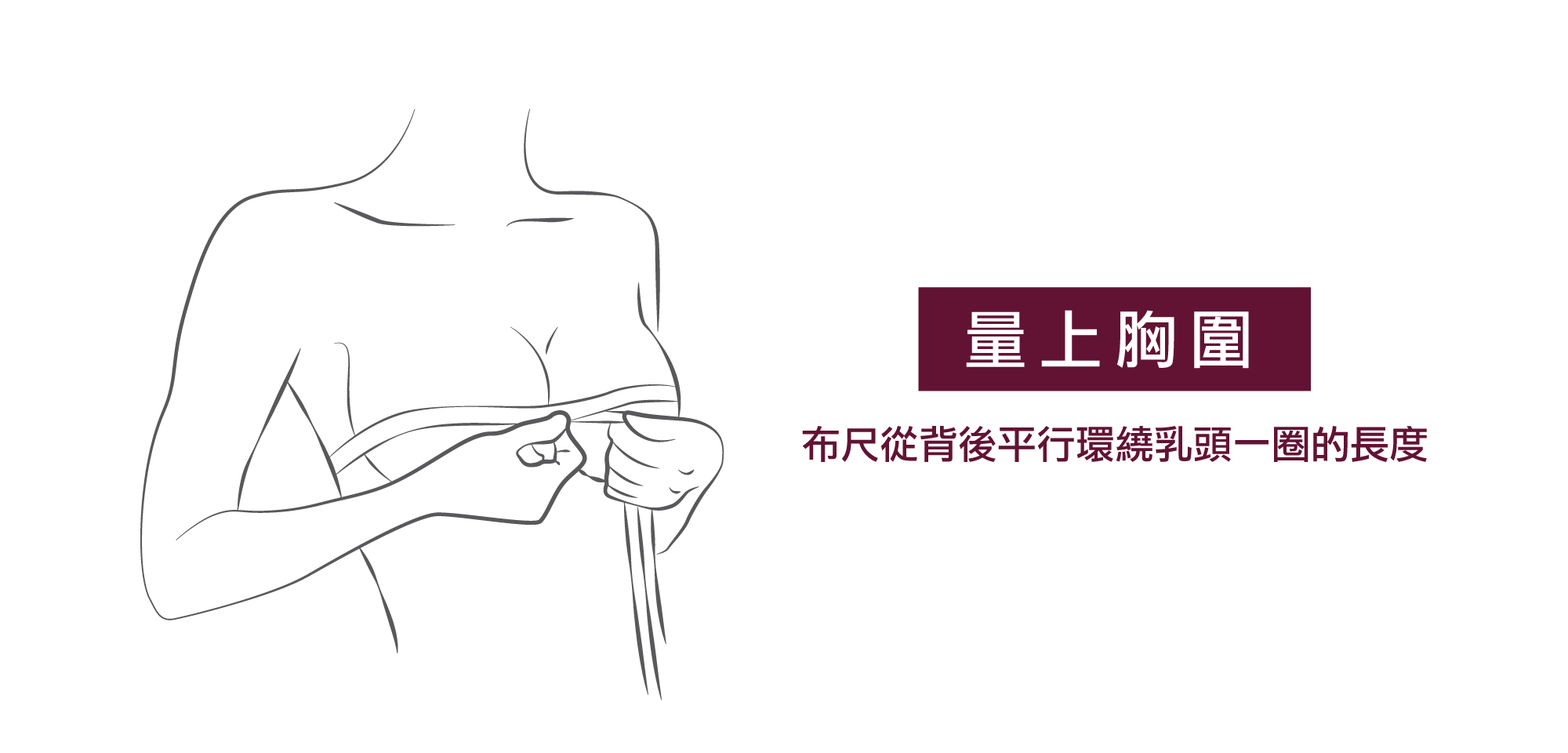 布尺從背後平行環繞乳房下緣一圈的長度