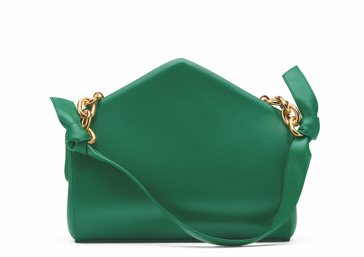 Daniel Lee 除了用綠色為 Bottega Veneta 留下標誌性的符碼外,他不斷在設計中藏著三角形符號,亦讓品牌不靠 Logo 便能讓人一眼就認出是 Bottega Veneta!這只「Point」包款不僅用特出的方式呈現編織,提把上的三角形設計,更將品牌最具識別度的代表符號呈現於其中。(商品售價:NTD172,000)