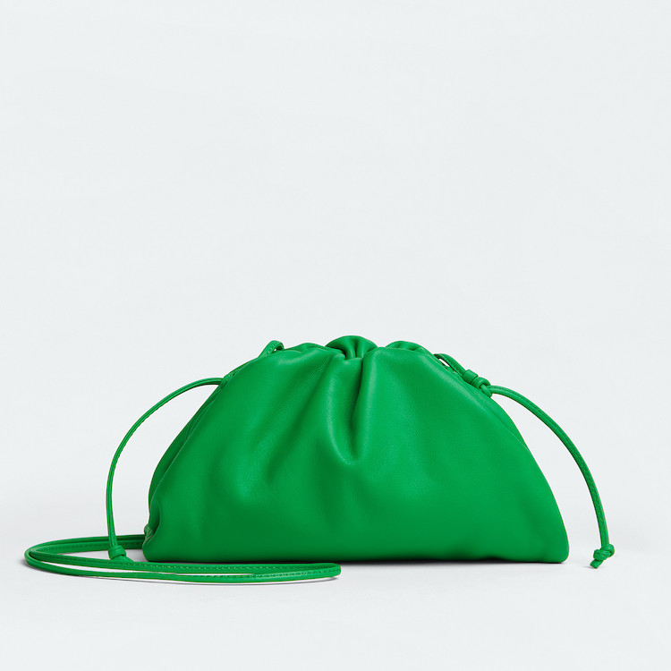 賣翻天的雲朵包,絕對是 Bottega Veneta 當今最火紅的包袋,這款「Mini Pouch」將雲朵包縮小,並加上肩帶的設計,不僅外型超可愛,亮眼的綠色更可以成為搭配重點,加上肩帶的細節同時也增添了實用性。(商品售價:NTD51,300)