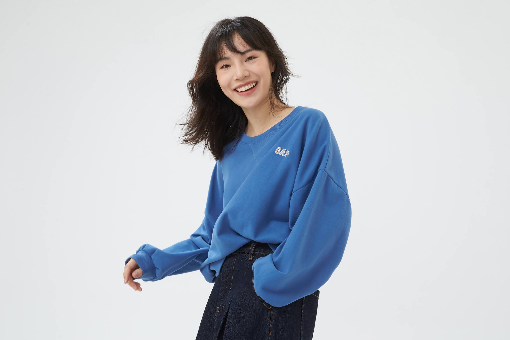 繡有 Gap 經典 Logo 的法式圈織休閒上衣,採用全新義大利碳素磨絨技術,由內而外打造細緻絨毛,舒適親膚的程度讓人穿了就不想脫下來。