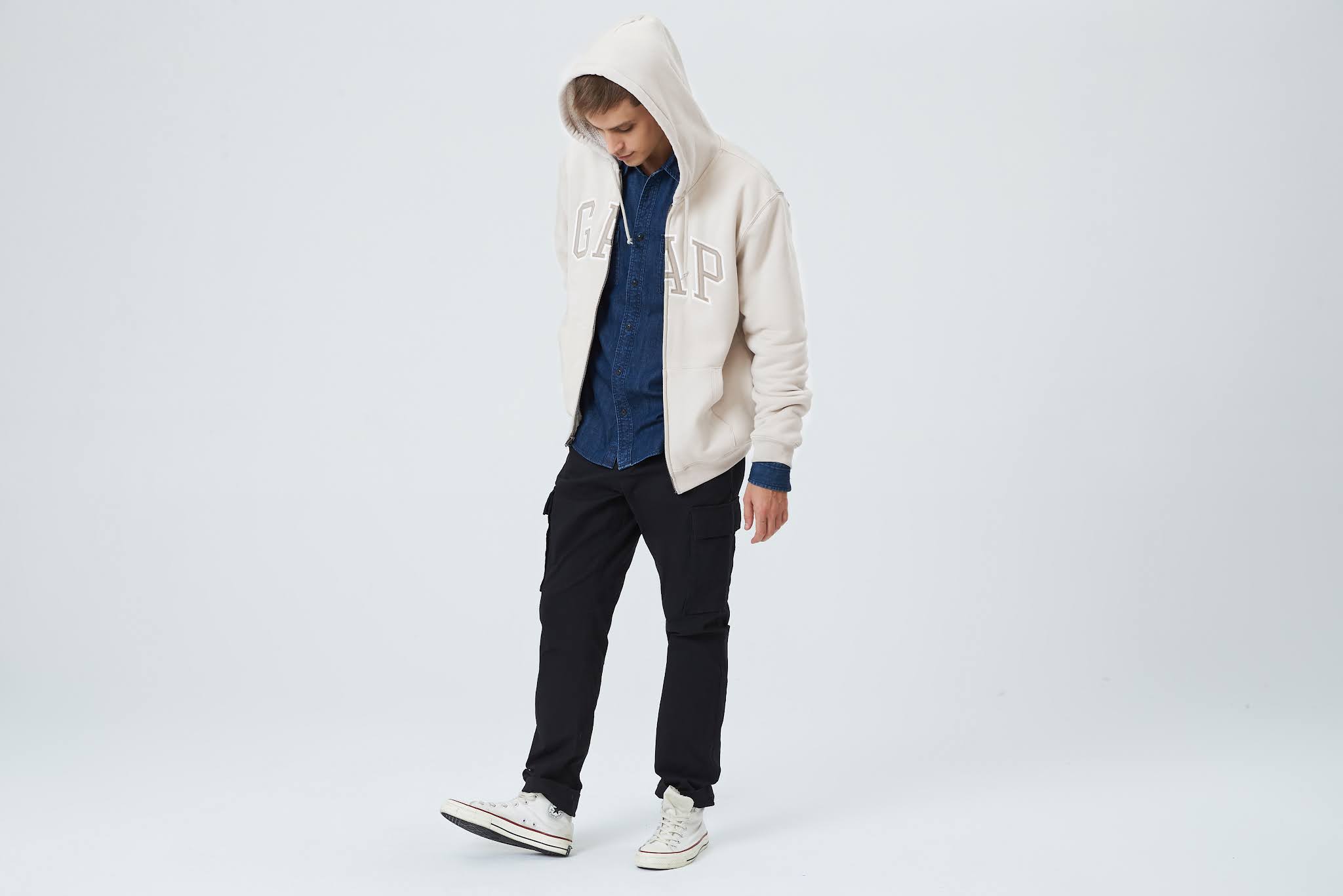 Gap 秋冬全新推出的碳素軟磨系列,細節處理毫不馬虎。Logo 與袖口撞色設計,輕鬆展現街頭時尚。內襯的親膚刷毛材質,則讓保暖效果不打折。