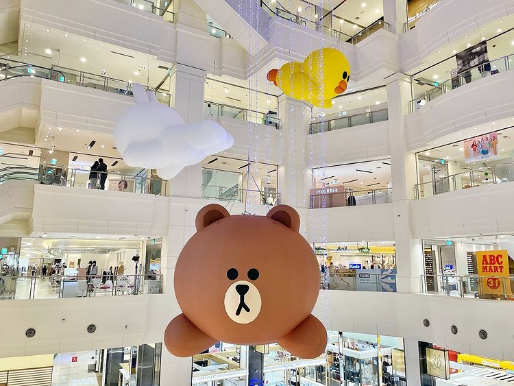 首先一踏進台茂,就會看到3米高、萌呆又可愛的熊大與禮物盒在門口迎接你,而到了台茂的中庭,則有巨型的熊大,以及他的後宮團兔兔與莎莉高掛在半空中,每到不同樓層都會看到不同的視角,想蒐集三支角色勢必得逛完!