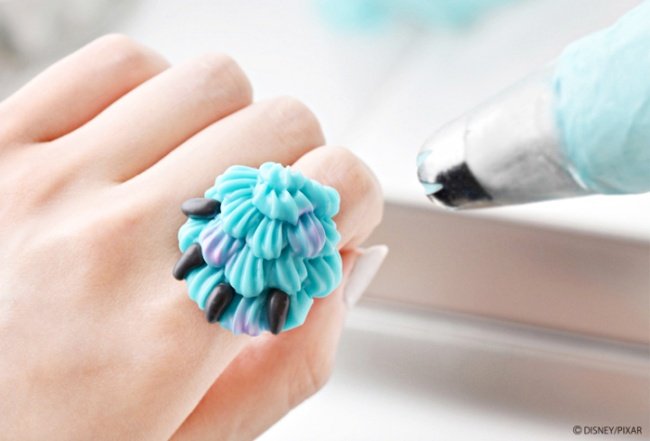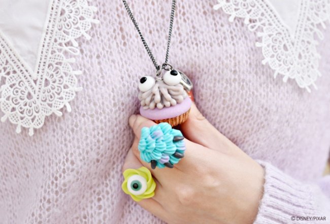 紫色、藍色超澎鬆的長毛加上兩個尖角…毛怪被做成杯子蛋糕戒指、項鍊後,一身招牌元素依舊可以秒認出,還推出一款「融化中」的毛怪戒指,戴上加持你的業績~