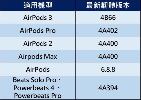 2. 歷代AirPods最新韌體版本: