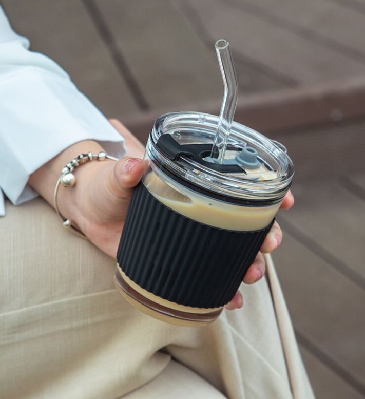 辦公室小資族最愛推薦6. 玻璃矽膠防滑吸管杯