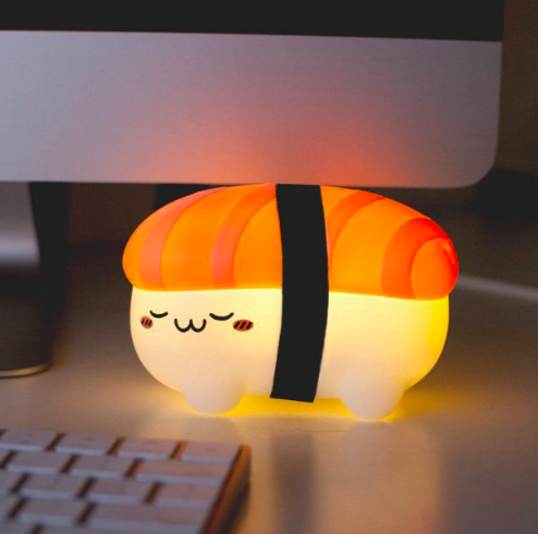 SUKI 鮭魚壽司小夜燈是一向以療癒小物為名的Smoko所推出的可愛療癒食品造型小夜燈,愛睡覺的鮭魚小壽司療癒造型,不開燈時,會是可愛的擺設,開燈時則是一種溫暖的陪伴,不管是放在辦公桌上陪你加班,或是擺在床頭,每天陪你入睡都很可以!