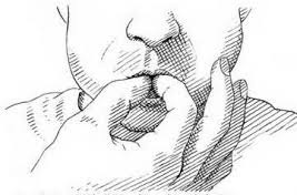 2. 把手指圈成「OK」的形狀,然後放入口中一個指節。