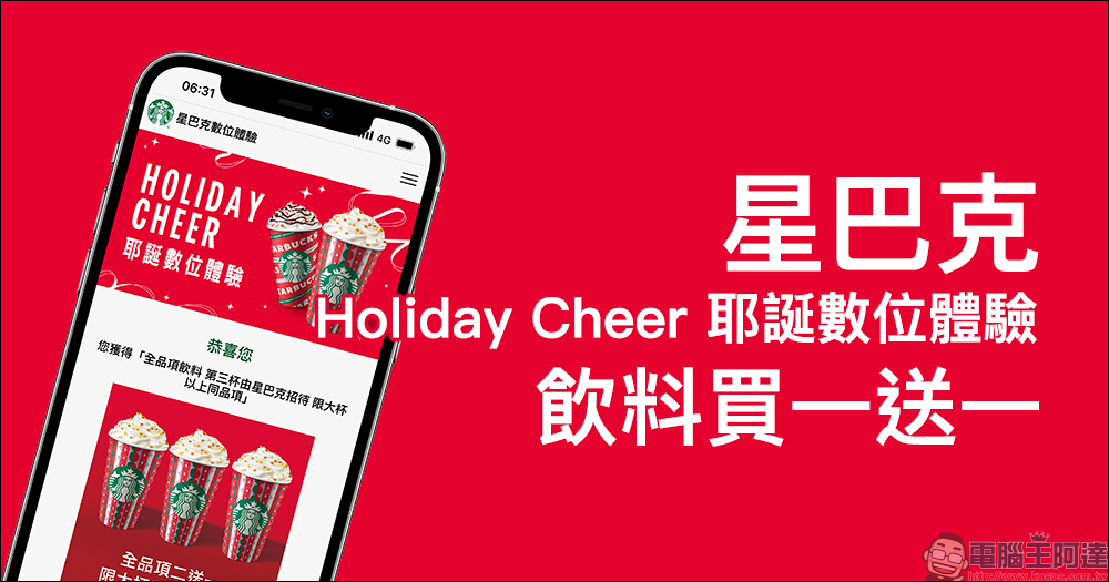 有段時間沒推出「數位體驗」活動的星巴克,也在 12 月這耶誕節的月份推出「Holiday Cheer 耶誕數位體驗」活動,雖然優惠券是要到 12 月 1 日(三)起才可使用,不過在今(29)日起就可以預先領取專屬飲料優惠囉!