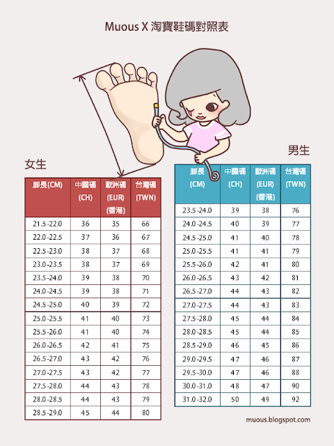 學懂怎樣算衣服尺寸了吧?那麼就到鞋子了~在淘寶的世界裡,最複雜的尺寸表一定非鞋子莫屬,永遠都會買錯鞋子的size!真的淚都流乾了~