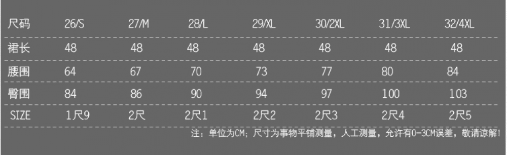 如果小編的腰圍是28英寸,按照下面的對照表就是74厘米,2尺2!可是上圖的腰圍沒有74啊?沒關係,按照上圖衣服的腰圍來看,衣服的彈性範圍是3CM左右,所以74厘米的話選擇XL碼就對了!因為加減範圍內有彈性的衣服都合適的!而且SIZE也是2尺2~非常吻合!大家就不用怕買錯啦~如果你發現SIZE與腰圍不吻合的話小編建議按腰圍來選擇!