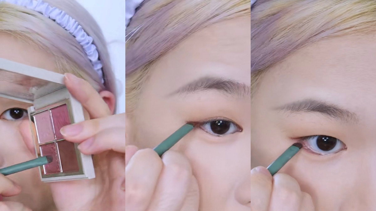 單眼皮消腫「倒置眼影畫法」步驟3:眼影主色暈染下眼尾