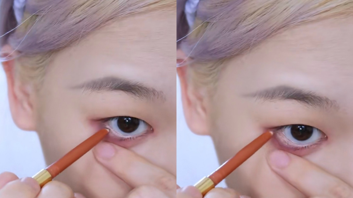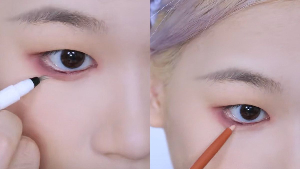 說到「倒置眼影」絕對少不了放大雙眼的靈魂步驟「下眼瞼留白」!我們可以使用遮瑕刷搭配遮瑕膏上在下睫毛根部內的三角區域,多了「留白區域」更能發揮放大雙眼小心機,懶女孩如果手邊有提亮筆、遮瑕筆也可以跟著這樣畫,會更加省時省事哦~