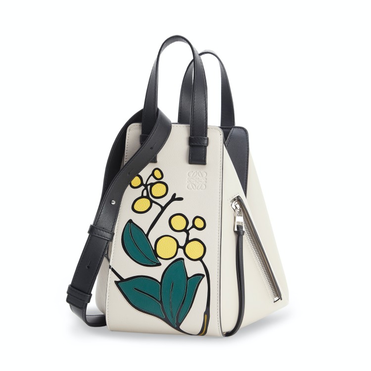 這款賣翻天的「Hammock」吊床包,即便問世了好幾年,依然是品牌櫃以及代購被狂問的款式,這次品牌運用米白色為基底,並搭配皮革鑲嵌的技藝,將葉片果實的圖樣呈現在包款上。(商品售價:NTD106,000)