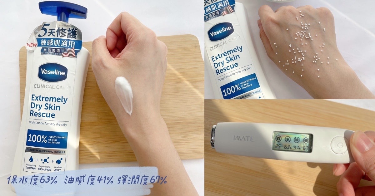 修復乳液怎麼能沒有凡士林呢!這款《凡士林 專業低敏修護乳液》選用高濃度的潤澤成分以及獨家肌膚屏障修護科技,能深度保濕鎖水並在肌膚表層形成保護膜,防止肌膚水分流失,而這款修復乳液質地也是濃稠的水狀,滋潤效果很好,能撫平乾燥脫屑部位,但由於抹開後質地偏黏膩,需要反覆塗抹幾次才能完全吸收,乾癢舒緩效果一般,同時這款乳液無添加香精,非常適合敏感乾燥肌,安全壓頭的貼心設計,也方便旅遊時攜帶!