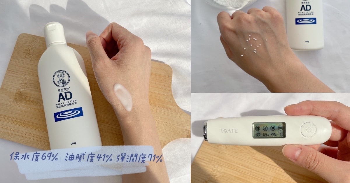 近期爆紅的修復乳液非它莫屬!曼秀雷敦這款《AD高效抗乾修復乳液》從日本紅到台灣啦~這款乳液不僅添加乾肌必備的維他命E、維他命原B5及尿素3種極潤保溼配方外,更加入薄荷醇、甘草酸鉀2種舒緩乾癢成分,舒緩乾癢效果超驚人!身為乾癢編的儂編每到換季,肌膚總會乾癢難耐,一不小心就抓到破皮,但自從儂編開始使用這款乳液後,手肘、腳踝…等部位的肌膚修復與舒緩乾癢效果超有感,是5款乳液使用後乾癢舒緩效果最明顯的,完全就是乾癢肌的救星!此外,這款乳液無添加香料、色素及礦物油,更讓儂編驚豔的是它的質地為清爽水感狀,延展性很好可大面積塗抹於肌膚上,滋潤度超高卻不黏膩,塗抹開後吸收超快,還有淡淡的薄荷香氣,完全打破儂編對抗乾癢乳液都非常黏膩的刻板印象!