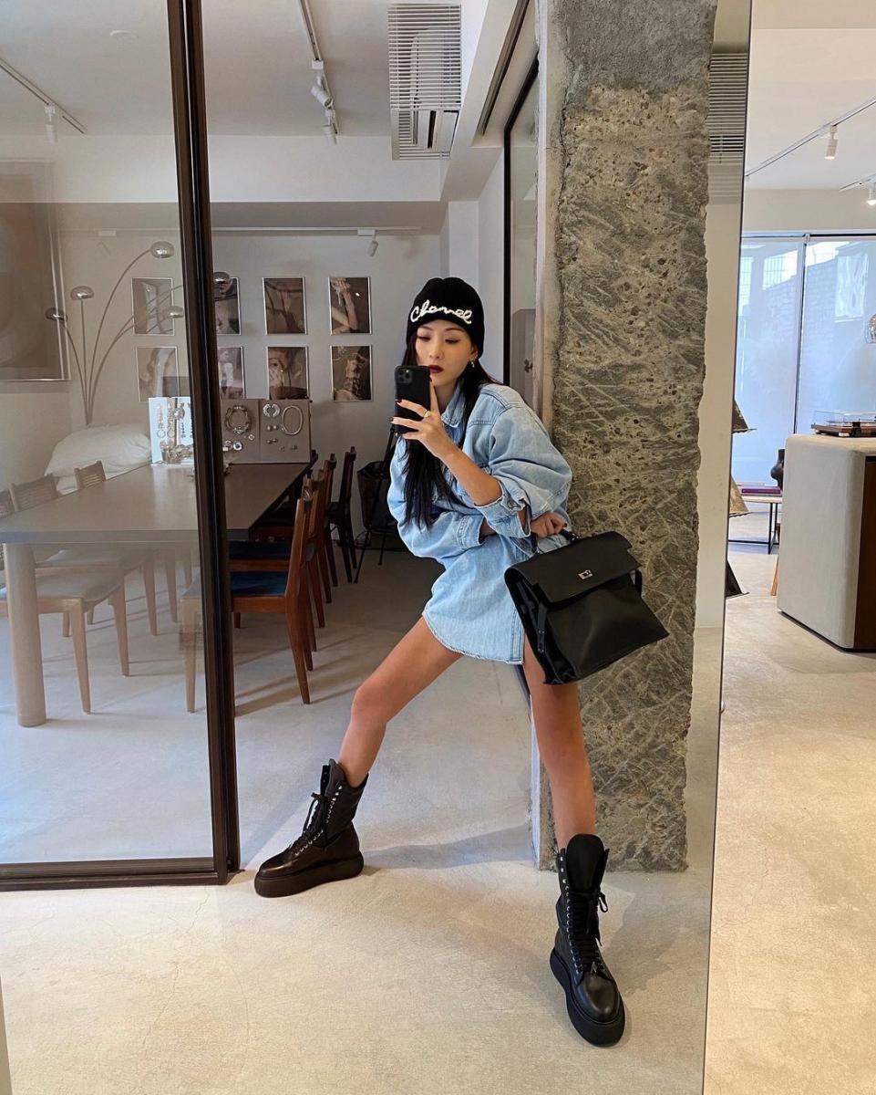 在時尚圈喊水會結凍的孫芸芸,一直是許多女孩的穿搭教課書,所以儂編特別精選了一套大家一定能找到類似款的辣妹丹寧Look!你只需要一件Oversize長版襯衫和一雙黑色綁帶軍靴和黑毛帽就能輕鬆臨摹,說不定大家的衣櫃裡本來就有這些單品,不妨趁著今年秋冬快點拿出來穿,簡單加入一點搭配巧思就能超有型!