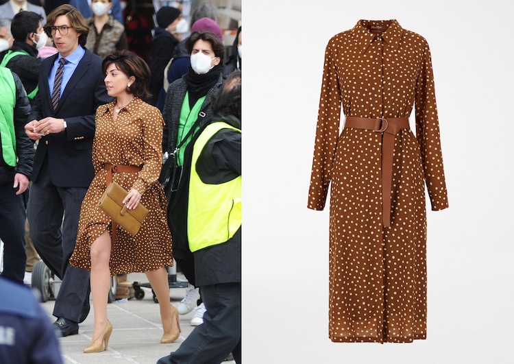不只 Gucci 品牌本身的單品在網路上受到熱議!其中 Lady Gaga 在戲中穿著一件來自 MaxMara 2021 春夏的洋裝引發熱議!大地色系為基底,再搭配上不規則的白色圓點,復古典雅的設計,讓該單品在 ShopStyle 的搜尋量提升 25%,劇中男主角 Adam Driver 在海報中所穿出的那件條紋西裝,優雅沈穩的設計,更讓「細條紋西裝」該單詞搜索次數狂飆 67%!