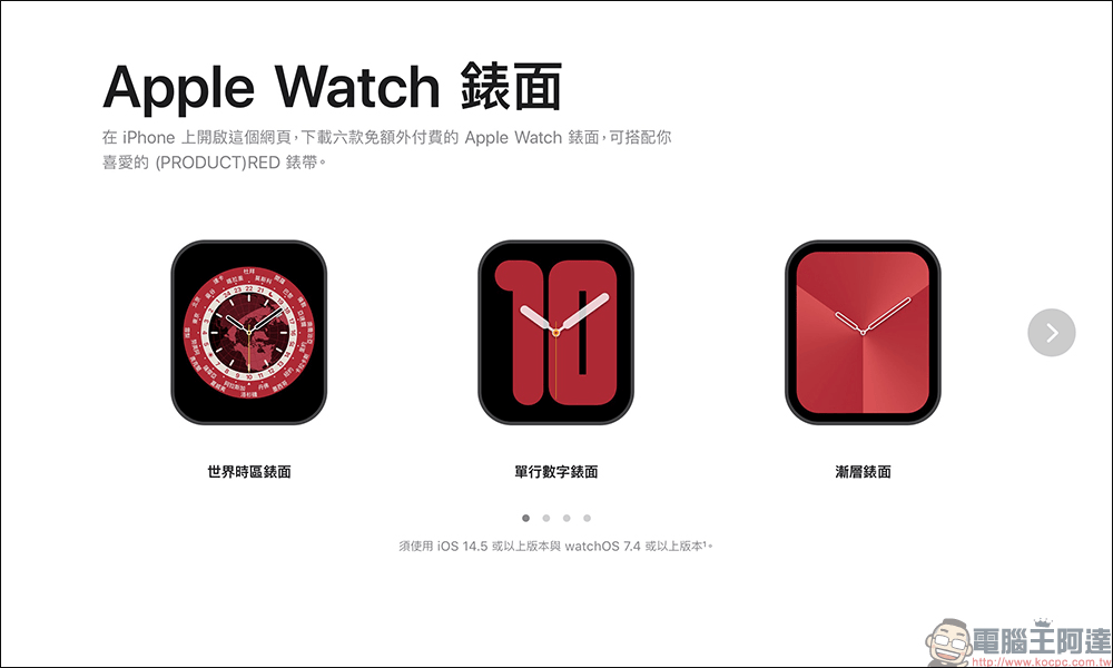 現在起只要開啟 Apple 官網的 (PRODUCT)RED 專屬網頁,即可下載 6 款不同樣式的 (PRODUCT)RED 配色錶面,讓大家能與喜愛的 (PRODUCT)RED 錶帶搭配。