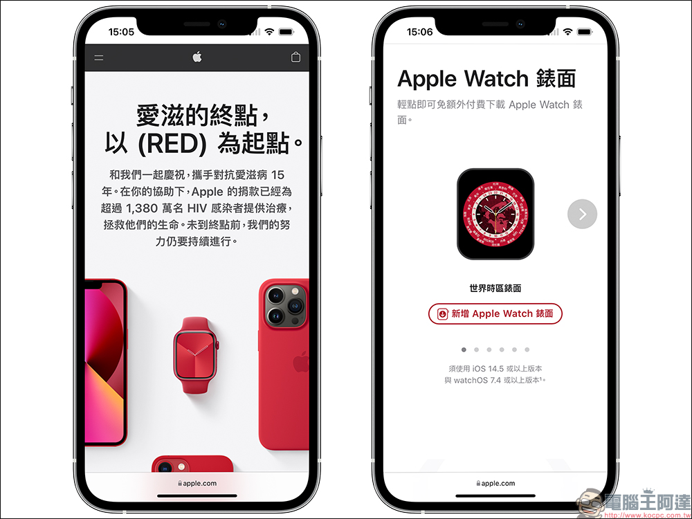 自 2006 年以來,Apple (PRODUCT)RED 的銷售持續資助對抗 HIV/愛滋病的各項計畫,今年也悄悄邁入 15 年,這些年 Apple 的捐款以為全球超過 1,380 萬名 HIV 感染者提供治療,拯救他們的生命。這計畫仍持續進行,在今年 Apple 也推出多款 (PRODUCT)RED 相關產品,更釋出了免費的 6 款主題 Apple Watch 錶面免費給廣大的 Apple Watch 用戶下載。