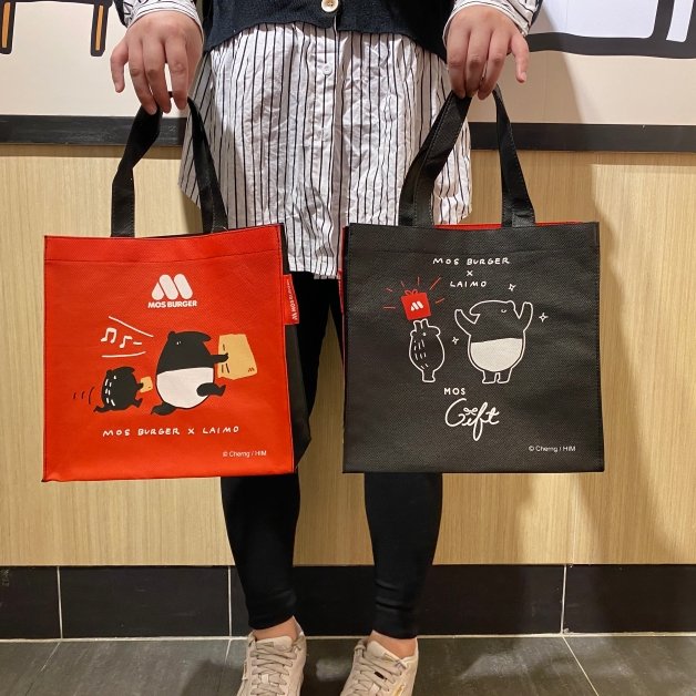 「MOS貘力禮品袋」雙面設計大容量環保提袋,一面是MOS紅色,一面是來貘黑白色,輕巧好攜帶,送禮自用兩相宜,環保材質還能重複使用,去買摩斯就是要提這袋,規格26cmx27cmx15cm,透買指定推薦組合也能加購29元升級為MOS貘力禮品袋喔!(12月15日起限量上市)