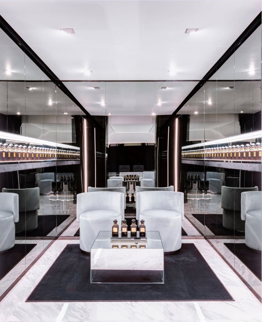 不過讓Tom Ford香水打開知名度的關鍵,不僅僅只有高端的調香品味!在首款黑蘭花香水上市的隔年,Tom Ford在紐約開闢了品牌第一間同名旗艦店,而這裡不只販售高級訂製服裝,還首次曝光了12瓶Private Blend香水系列(也就是你我熟知的私人調香香水系列)。讓人出乎意料的是,在當時每瓶淡香水約50-100美金的年代,Tom Ford大膽地將12款一套的香水作品,以套為單位,堅持不單售,一次下手的金額就如同投資一款精品包,快狠準地豎立了香氛市場中高端階層!甚至當時的旗艦店在設計上,也布置得如同貴族私宅,琳瑯滿目的香水陳設圍繞,一進門就有管家接待,就像在逛私人博物館,滿足了高端消費者的奢寵享受。
