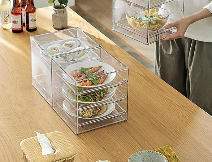 超省檯面空間推薦-7:多層透明可疊加抽屜式多功能備菜盤