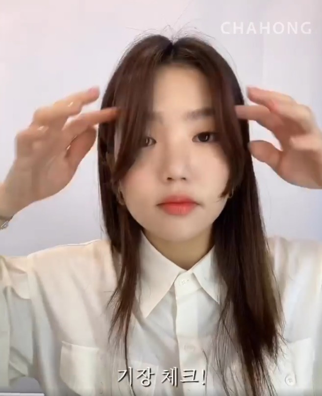 好不容易去髮廊剪一頭喬妹同款八字瀏海,過沒多久瀏海又長長實在很困擾呀~韓國髮型師手把手教大家如何修剪&吹整!首先用梳子將左右兩側瀏海分好,再抓出中間段瀏海,大概就是2個指節寬度即可。