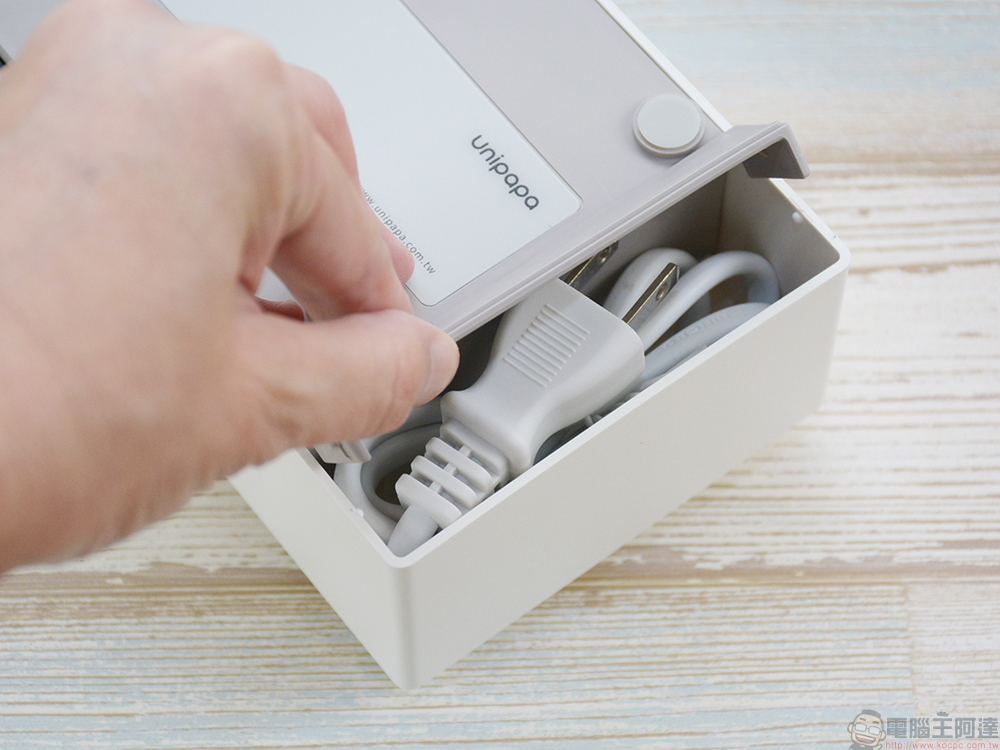 先來看看整個 Unipapa Loop 循環除濕盒套組中的內容物,其中包含有兩個可循環再生使用的除濕盒、一個加熱還原器以及兩條可視空間類型調整使用的吊掛自黏帶,後面筆者會分別講講各自的用途。