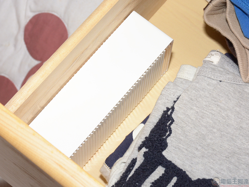 一般常看到的拋棄式除濕盒因為必須預留儲水空間,不得不將外盒加高,你無法將它放進窄小扁平的抽屜中。倒著放?吸濕後的水可是會直接流出來,重洗衣服洗到哭,外型上大概也無法滿足對生活質感比較講究的人。還有一點要注意的是,拋棄式除濕盒中所使用的是化學性吸濕材料氯化鈣,如果家裡小朋友因為好奇拆解除濕盒拿來玩,甚至是吃下肚,整體來說應該算是「沒辦法中的辦法」。