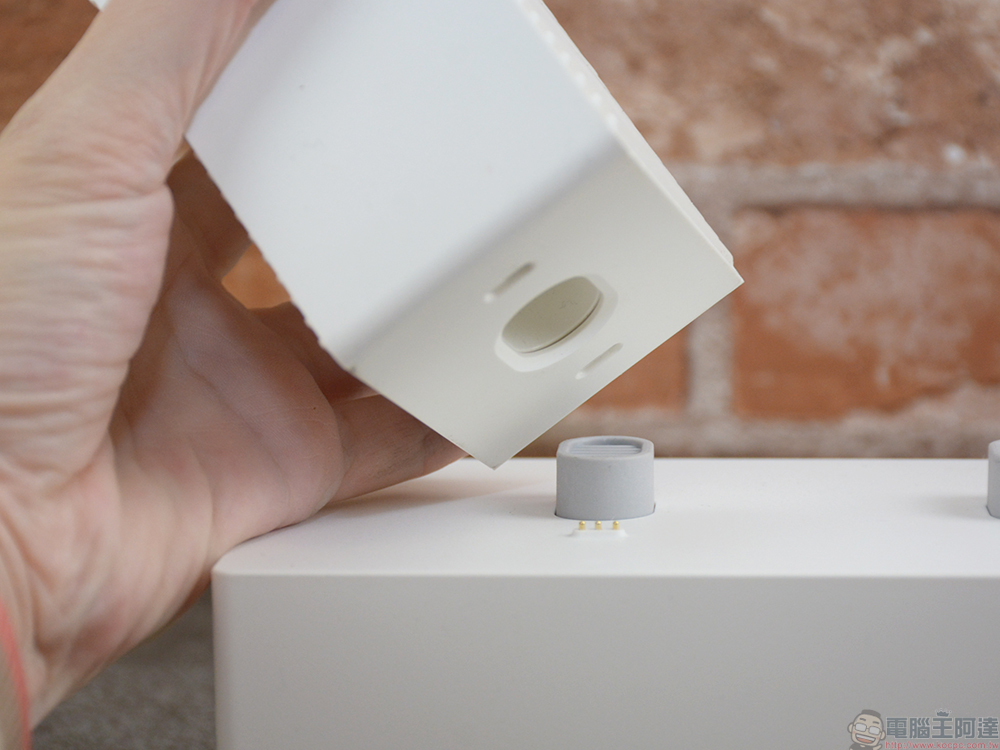 將電源線插好後,加熱器本身不需要你動手操作,只要將除濕盒底部的凹槽對準凸出的出風口放上去,觸發接點後自動將熱風均勻地送入除濕盒,以熱循環的方式烘乾裡面的水玻璃。
