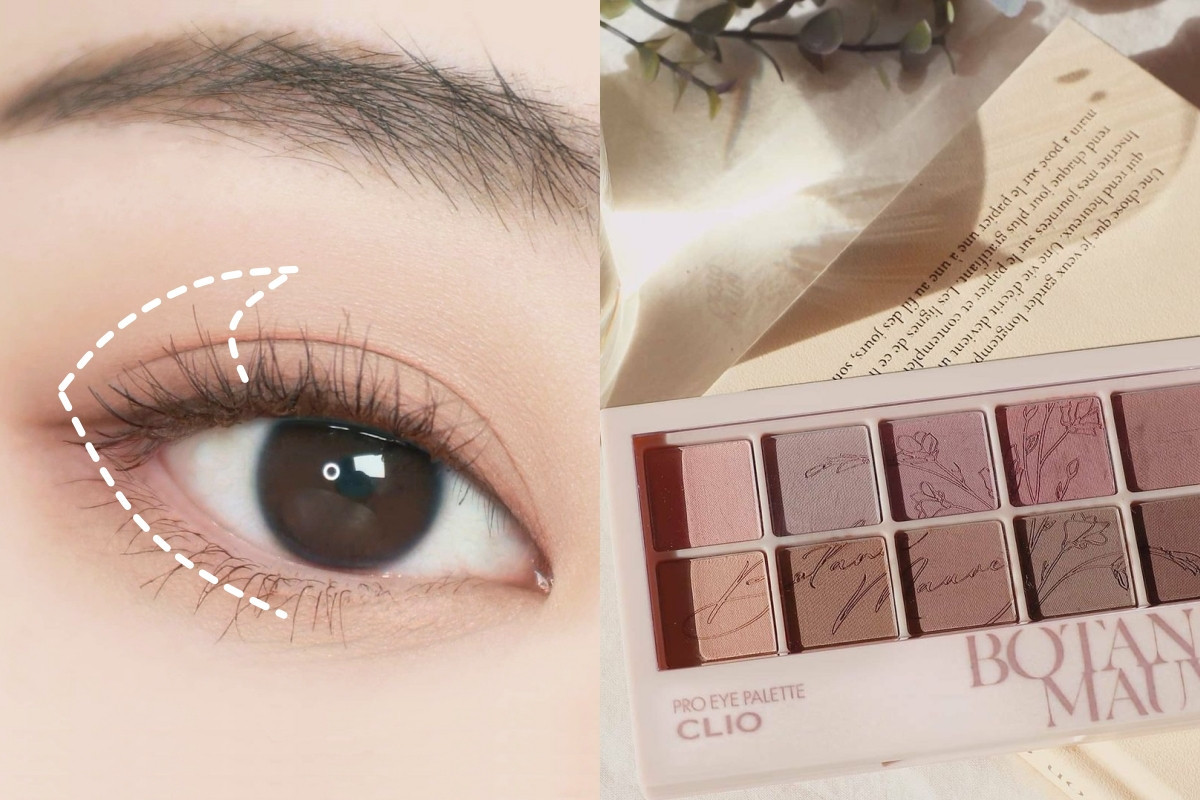 不喜歡珠光眼影的人,利用低飽和的霧面眼影也可以畫出輪廓感眼妝!先以霧面的裸膚淺色調畫滿眼窩打底,在用霧面的低飽和灰棕色畫在眼尾ㄑ字部位,眼妝乾淨又有輪廓感,顯得眼窩更加深邃!