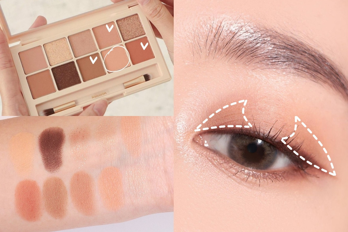 黃皮眼影配色範本:淺裸棕色+奶茶色眼影