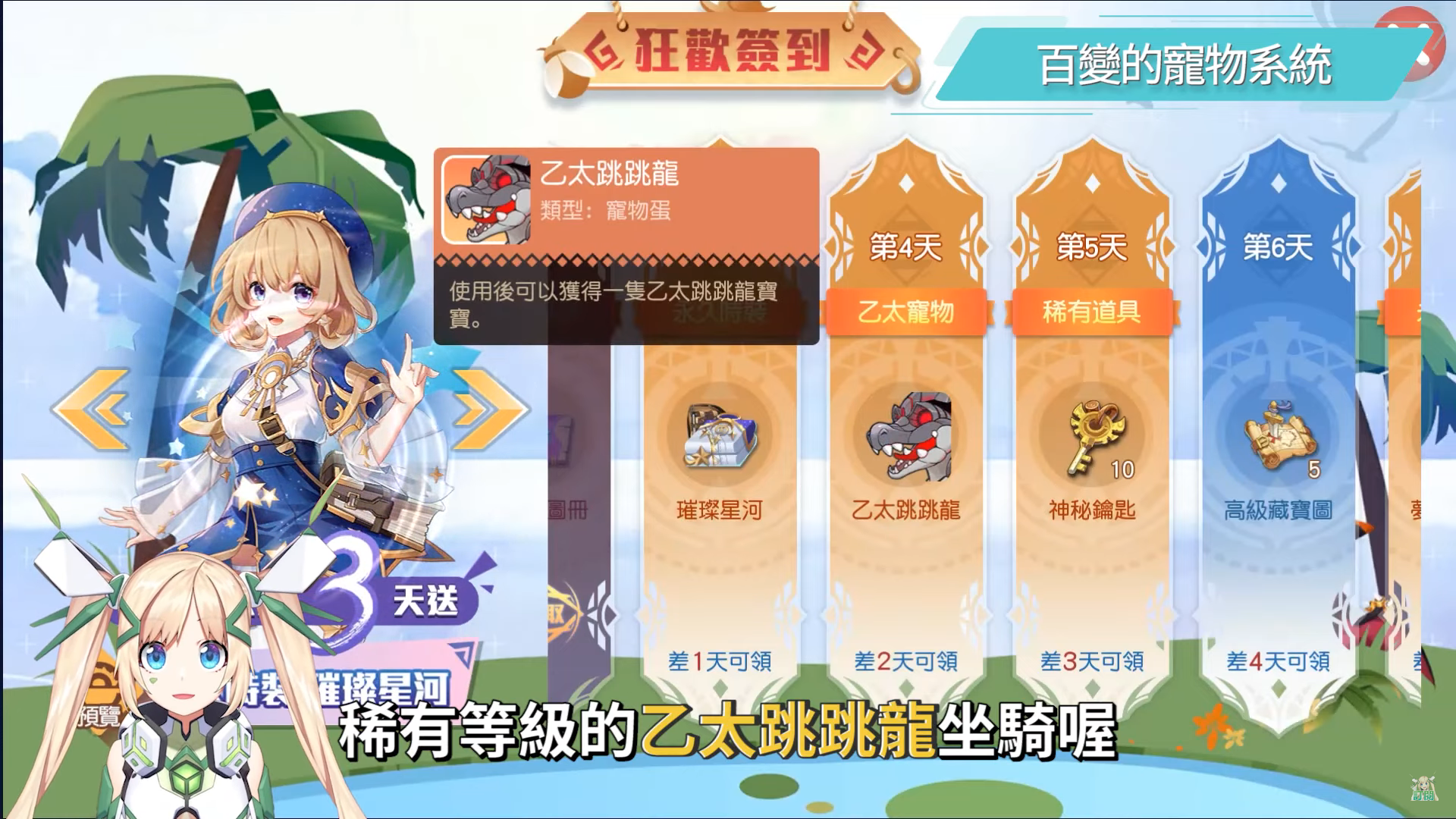 加上現在只要下載遊戲,就會免費送你一隻稀有等級的乙太跳跳龍坐騎呢!