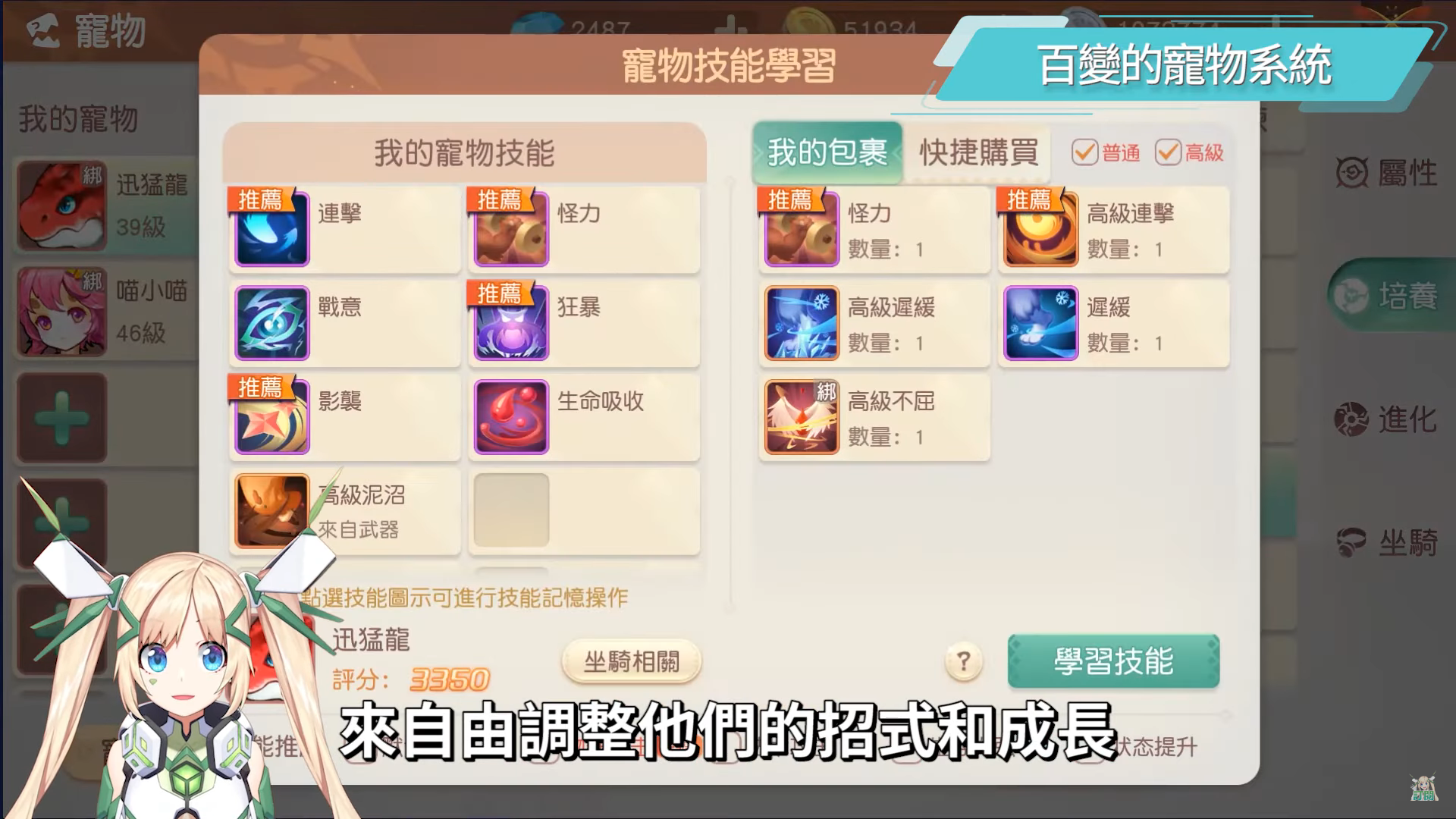 洛洛覺得《夢想新大陸》這款遊戲最主要的特色和有趣的地方,就在於有著多樣化的寵物系統。